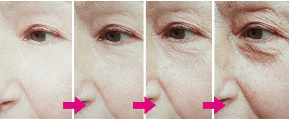 L’invecchiamento esagerato della pelle del volto, quindi, è la risposta del nostro corpo alla mancanza di collagene, elastina e acido ialuronico da una parte e della disidratazione cutanea dall’altra.
